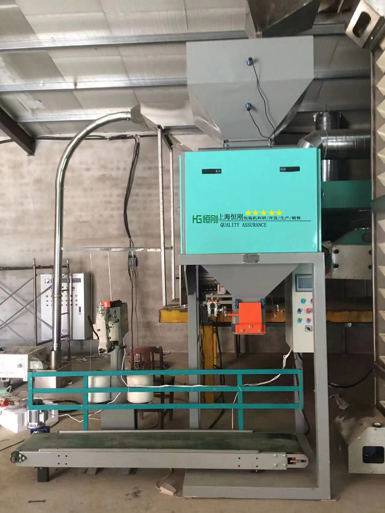 上海鑄衡工廠生產的這臺自動定量包裝秤帶有移動腳輪,對包裝袋材質要求不高,通用性比較強,在糧食、肥料、飼料、樹脂顆等個行業應用廣泛,大大提高了企業的包裝效率,減輕了工人的工作負擔。包裝秤基本配置有:儲料斗、閘板閥、皮帶輸送機、重力給料機構、稱重儀表控制箱、縫包機及縫包立柱、落料斗及夾袋裝置、鋼平臺(用戶選購)、稱重計量斗及稱重主架。